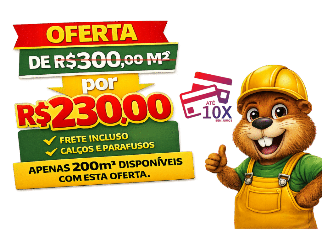 A instalação é simples e segura. A telha possui um formato trapezoidal com encaixe perfeito (sobreposição), garantindo Zero Vazamentos com inclinação mínima de 3%. Além disso, fornecemos calços e parafusos de vedação especiais, além de suporte técnico da Castor.